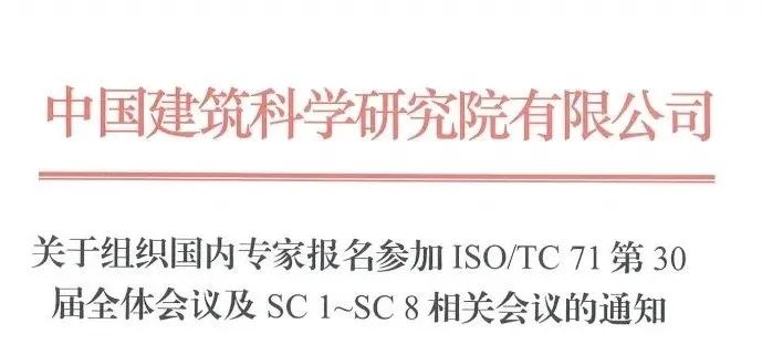 為促進(jìn)國內(nèi)專家積極參與混凝土領(lǐng)域的國際標(biāo)準(zhǔn)化工作,中國建筑科學(xué)研究院有限公司(以下簡稱“中國建研院”)作為國內(nèi)技術(shù)對(duì)口單位,負(fù)責(zé)組織國內(nèi)有關(guān)單位及專家報(bào)名參加ISO/TC 71第30屆全體會(huì)議及SC 1~SC 8相關(guān)會(huì)議。