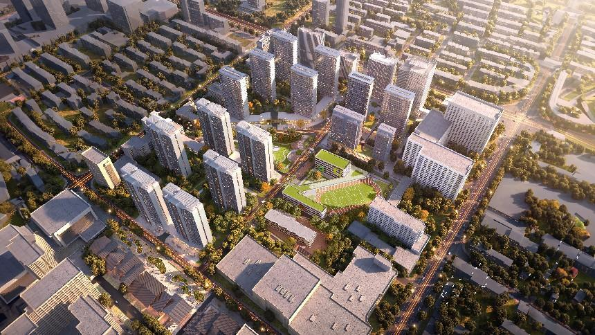 該項目凈用地面積約205畝,總建筑面積約88.8萬平方米,其中地標綜合樓約10萬平方米,住宅約49萬平方米,公寓辦公商業約13萬平方米,教育設施約5.3萬平方米。