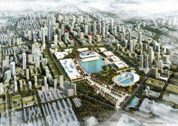 利用銀河公園與現(xiàn)狀樂園的綠化、湖面形成開敞空間,從天津大禮堂向東延伸景觀軸線,在軸線底景布置天津大劇院,面向湖面,與水景相映成趣。在湖面南側,結合現(xiàn)狀保留的天津博物館(改建為自然博物館)與中華劇院,自西向東依次布置天津博物館、天津美術館、天津圖書館,形成文化帶;在湖面北側,布置天津樂園。規(guī)劃中的南側文化帶建筑端莊典雅,北側天津青少年活動中心、天津樂園活力動感,兩側建筑的尺度設計和材質運用相互協(xié)調、呼應,烘托出天津大劇院清新大氣的主體地位。在交通組織方面,設計方案充分考慮區(qū)域人流集散特點,依據(jù)區(qū)域道路交通網(wǎng)絡,中心城區(qū)4條軌道交通線路將服務于文化中心,實現(xiàn)便捷高效的公共交通服務,保證人流的快速集散;同時,完善周邊地區(qū)道路網(wǎng)絡,并結合地下空間開發(fā),為項目提供有力的交通保障。文化中心以“文化、人本、生態(tài)”為主題,充分展示天津大氣、洋氣、和諧、現(xiàn)代的靚麗形象。