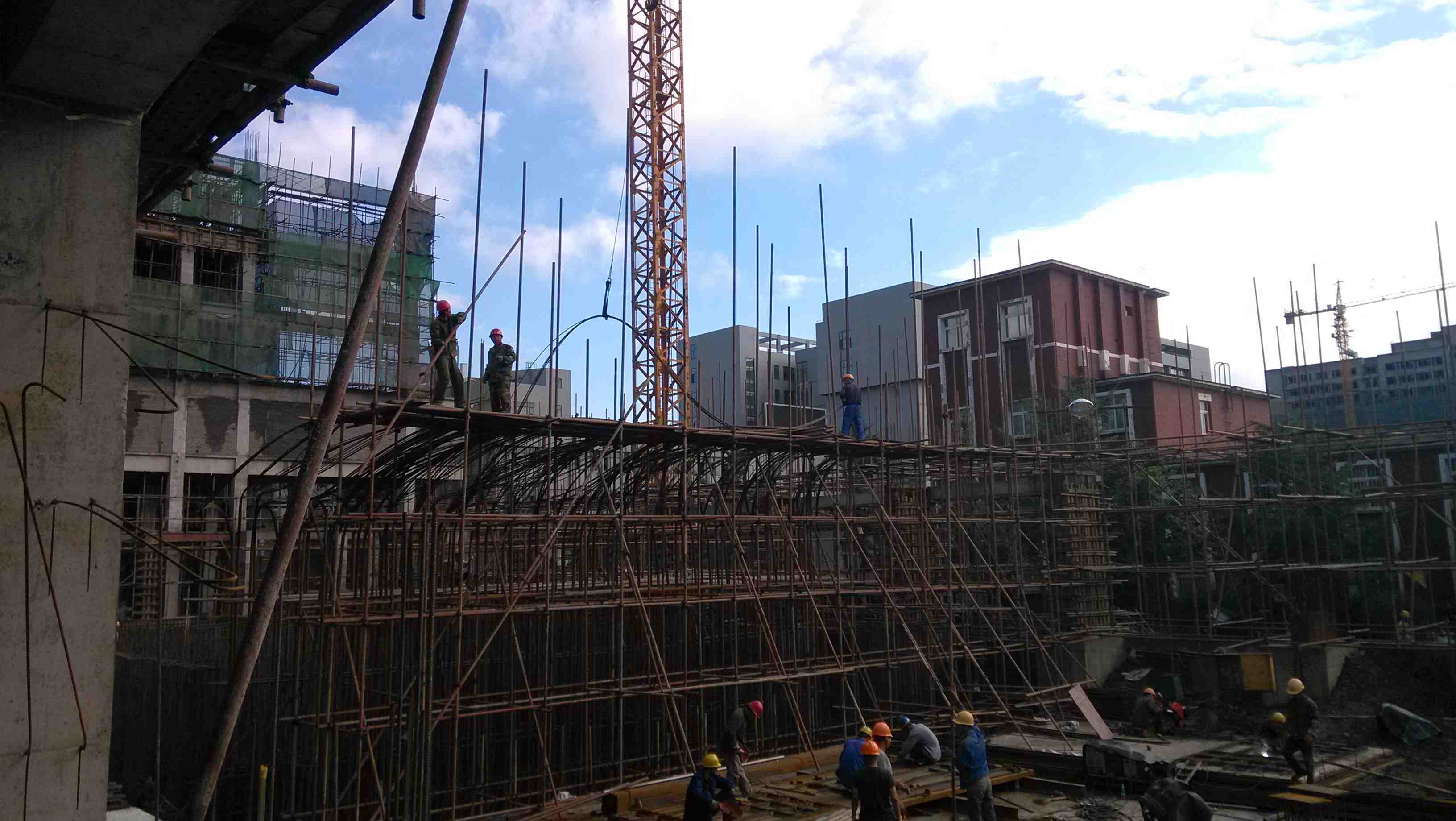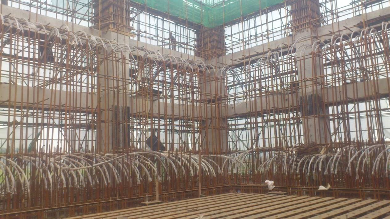 預應力施工。反力墻結構,L型平面,25m×12m,高15m。
